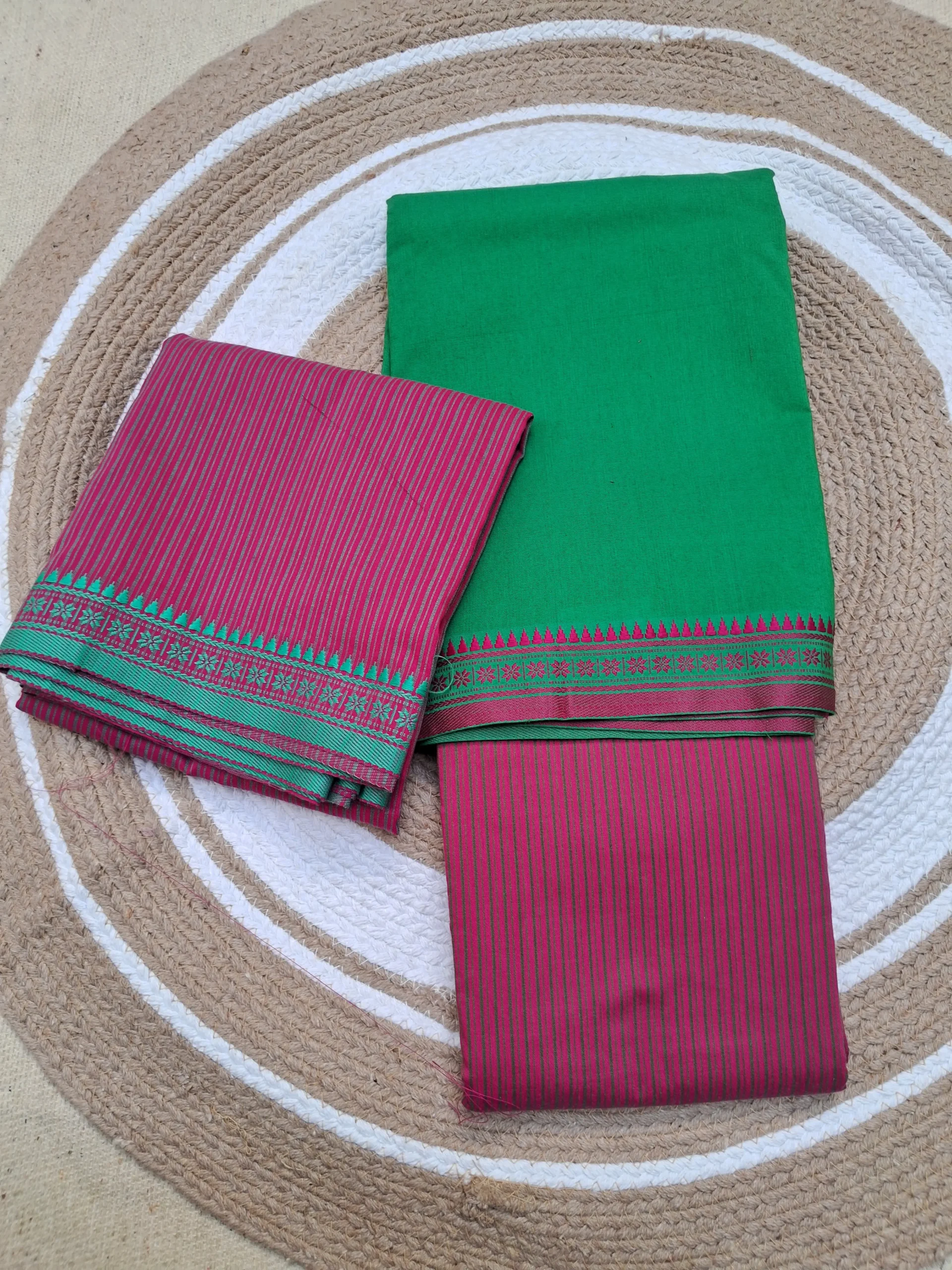 Green and Pink (Plain)Puneri Cotton Dressmaterial