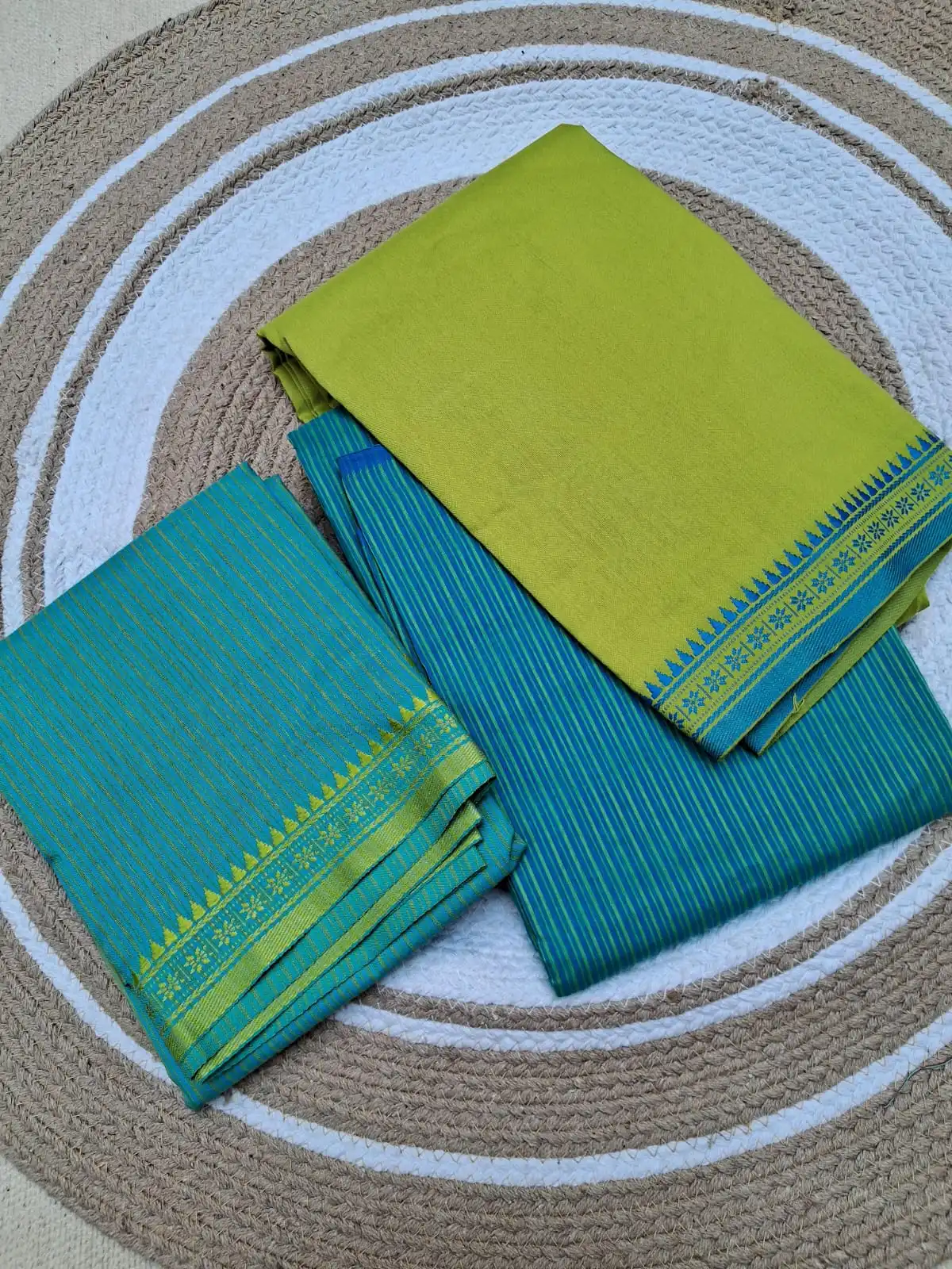 Lemon Green and Blue(Plain)Puneri Cotton Dressmaterial