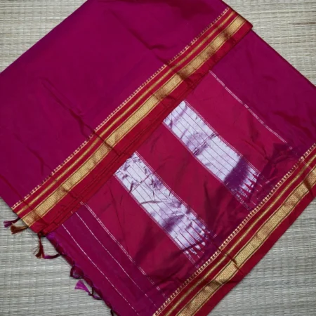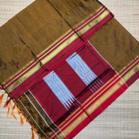 Ilkal sarees originate from the historic town of Ilkal in Karnataka, renowned for its rich weaving tradition. These distinctive sarees feature a cotton silk body paired with elegant borders and a beautifully crafted pallu.